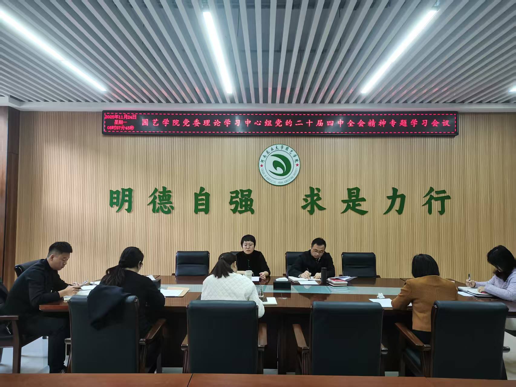 召开党委理论学习中心组党的二十届四中全会精神专题学习会议。学院领导班子成员参加会议,学院党委书记郭娟主持并讲话。
