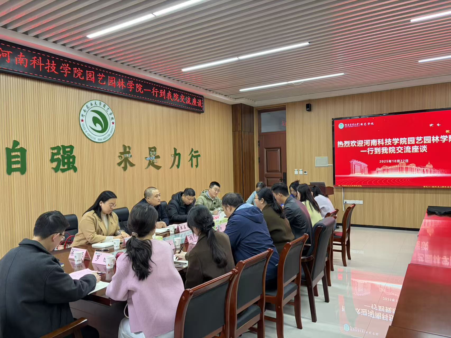 与河南科技学院园艺园林学院交流座谈会在龙子湖校区力行楼北 215 会议室成功举办。河南科技学院园艺园林学院党委副书记、纪委书记、工会主席王占魁带队,研究生秘书姚正阳、团委书记刘璐等一行 4 人出席交流;台湾av女优