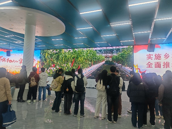 下午,师生们来到河南农大扶沟蔬菜研究院。研究院内,智能化连栋大棚、日光温室和外保温塑料大棚错落有致,各种蔬菜瓜果长势喜人。在玻璃连栋温室内,学生们亲眼目睹了不同模式的无土栽培,以及多种多样的栽培品种,深刻体会到了现代农业技术的先进性与实用性。研究院的工作人员还详细讲解了农业园区的布局与运营管理方式,让学生们对农业园区的规划与管理有了更加直观和深入的理解。