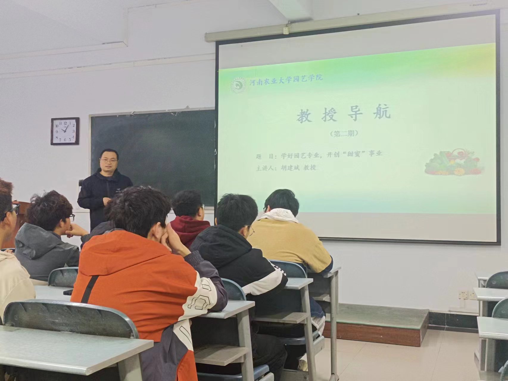 第九期教授导航活动顺利开展,由我院胡建斌教授为园艺类23-4班做“学好园艺专业,开创甜蜜事业”的主题交流讲座。