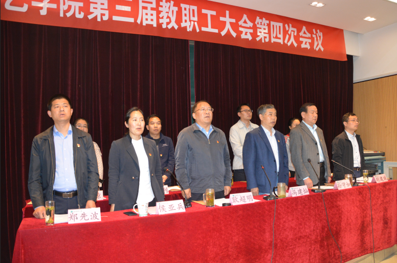 4月25日下午,我院第三届教职工代表大会第四次会议在2号楼四楼学术报告厅召开。院党委书记耿超明,院长冯建灿、院党委副书记侯亚兵,副院长孙守如及学院全体教职工代表参加了此次会议。