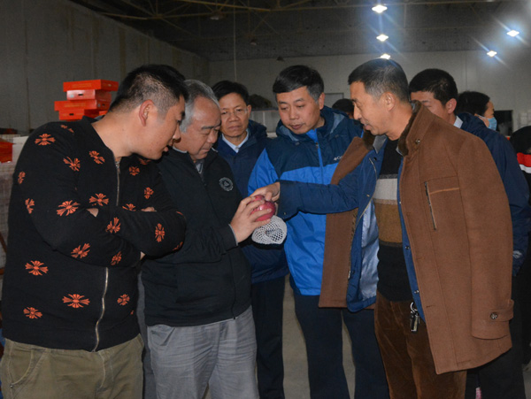 首先,基地技术人员带领我们登上瞭望台,远处层山起伏,近处满园丰收的景象让老师们惊叹不已,红红的大苹果像是育种专家欣喜的笑脸,苹果上晶莹剔透的露珠尤如专家脸上流淌的汗水,硕果累累的枝条折射出品种的优异,株株丰盈的果园透露出基地经营管理的科学。随后到了圃内整形大苗建园示范区,该区内有几棵果树基部膨大突出,明显暴露出砧木和接穗的不亲合现象,专家们形象的将此类果树称之为“大脚树”,院长冯建灿教授耐心地向青年教师讲解了“大脚树”产生的原因、基理以及目前尚在研究的未知领域。在苗圃地,一棵棵高低不平、苗龄不同的苹果苗分别栽植在大小不一的黑色容器中,听冯院长介绍说,这是具有世界先进技术水平、荣获国外专利的果树定植控根容器,具有控制植物根系生长方向和自行与土壤融合变为肥料的特异功能,让一些一直埋头实验室研究的青年教师惊奇不已,不禁感叹:“真是创新无处不在啊!行行都能出状元”。基地的育苗工厂是一排排的日光温室,不同的区域培育着不同品种、不同年龄、不同阶段的苹果苗,山门峡原陕县农业局局长李保安详细地向老师们介绍了苹果矮化砧木控根育苗技术。之后老师们又相继参观了有机肥料的生产加工厂、苹果分级分类包装车间和农业物联网信息监测室,机械化生产和信息化监测调控彰显出我国高山农业现代化的时代气息。苹果采摘园的景象最是欢快热闹,老师们面对个个挂满枝头诱人的大苹果眼花缭乱,手触此,眼望彼,欲摘这个,又看到那个,说不完的赞叹语,听不尽的欢笑声。在此果园,老师们谈的不仅仅是大苹果,而是分子育种与常规育种的结合,想的不单单是辣椒、蕃茄,而是苹果的嫁接技术、包装营销模式在蔬菜方面的应用,不同年龄、不同优势、不同研究方向的老师们聚集在一起,讨论未来科研协同创新大趋势,研究未来园艺作物生产栽培育种方向和园区经营管理新模式,探索依靠科技创新驱动农业发展新途径。