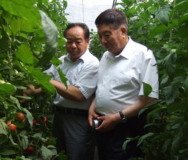 2014年6月5日,中国工程院院士,中国农业科学院蔬菜花卉研究所研究员,我院双聘院士方智远,在副院长孙治强教授陪同下,到位于黄河滩区的毛庄绿园蔬菜基地,检查指导了由我院承担的国家大宗蔬菜产业技术体系栽培与营养研究室岗位科学家科研成果展示情况。