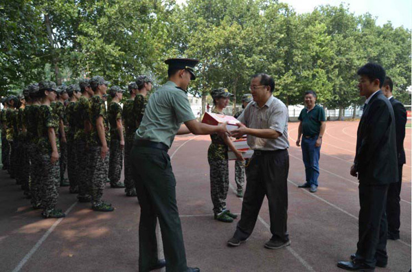 在军训现场,冯建灿院长亲切地问候同学们,并简要介绍了学院的专业设置及就业前景,他希望同学们能够尽早确定自己的目标,并为之不断努力。最后,冯院长鼓励同学们在军训中发扬不怕苦不怕累的精神,保证身体健康的前提下磨练意志,度过一个愉快而难忘的军训。