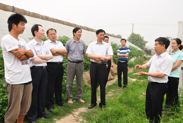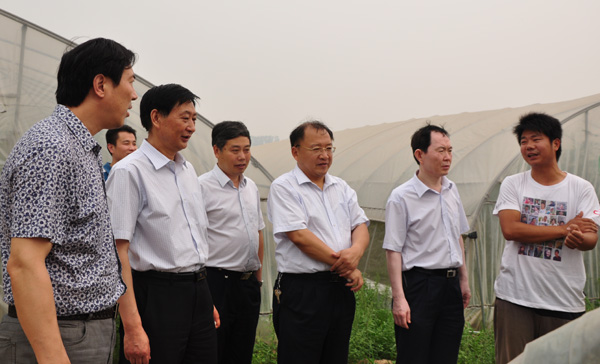 6月7日下午,我校副校长张全国、省教育厅学生处正处级调研员杨占军,在我校招生就业处处长张留湛、我院党委书记耿超明、院长冯建灿等一行的陪同下,来到我院学生王鹏鹏、王继广的创业基地,视察了学生创业经营的西瓜、甜瓜、西红柿、辣椒等瓜菜设施栽培基地。