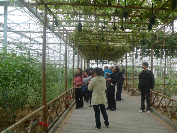 中原农业文化创艺园是以现代农业为核心,以生态旅游为特色的大型都市农业文化主题景园。我院教职工首先在中原农业创艺园参观了利用现代农业技术栽培园艺作物的园区,园区内有棚架南瓜、双椒、甘蓝、银叶菜、立体栽培牛蒡、水培生菜、无土栽培茄子、番茄树等园艺作物,接着参观了蔬菜大棚。随后到弘亿国际庄园参观现代化的草莓种植模式。弘亿国际庄园以研发、种植和生产草莓为主,据工作人员介绍,该园区草莓品种近百个,其中红颜草莓果大肉多、鲜嫩多汁,且有奶香味,可谓草莓中的珍品。