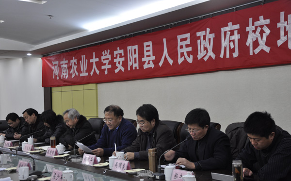 1月14日,安阳县委召集了全县农业局、畜牧局、农机局等与农业相关的局领导和现代农业生产企业和示范基地负责人与我校专家科技服务团成员一起召开了座谈会。各位专家首先根据对安阳县实地考察的情况,分别从安阳县高效农业生产和产业结构调整、安阳县现代农业“三带”式布局、安阳县林果业发展定位和创建品牌等不同的角度给安阳县现代农业发展提出了很多建设性意见和建议。安阳县各农业相关部门也分别从各自的实际情况出发,就人才短缺、技术支持、土地转型、降低风险、融资、联营、新型设备使用等方面的问题与专家们进行了共同探讨。