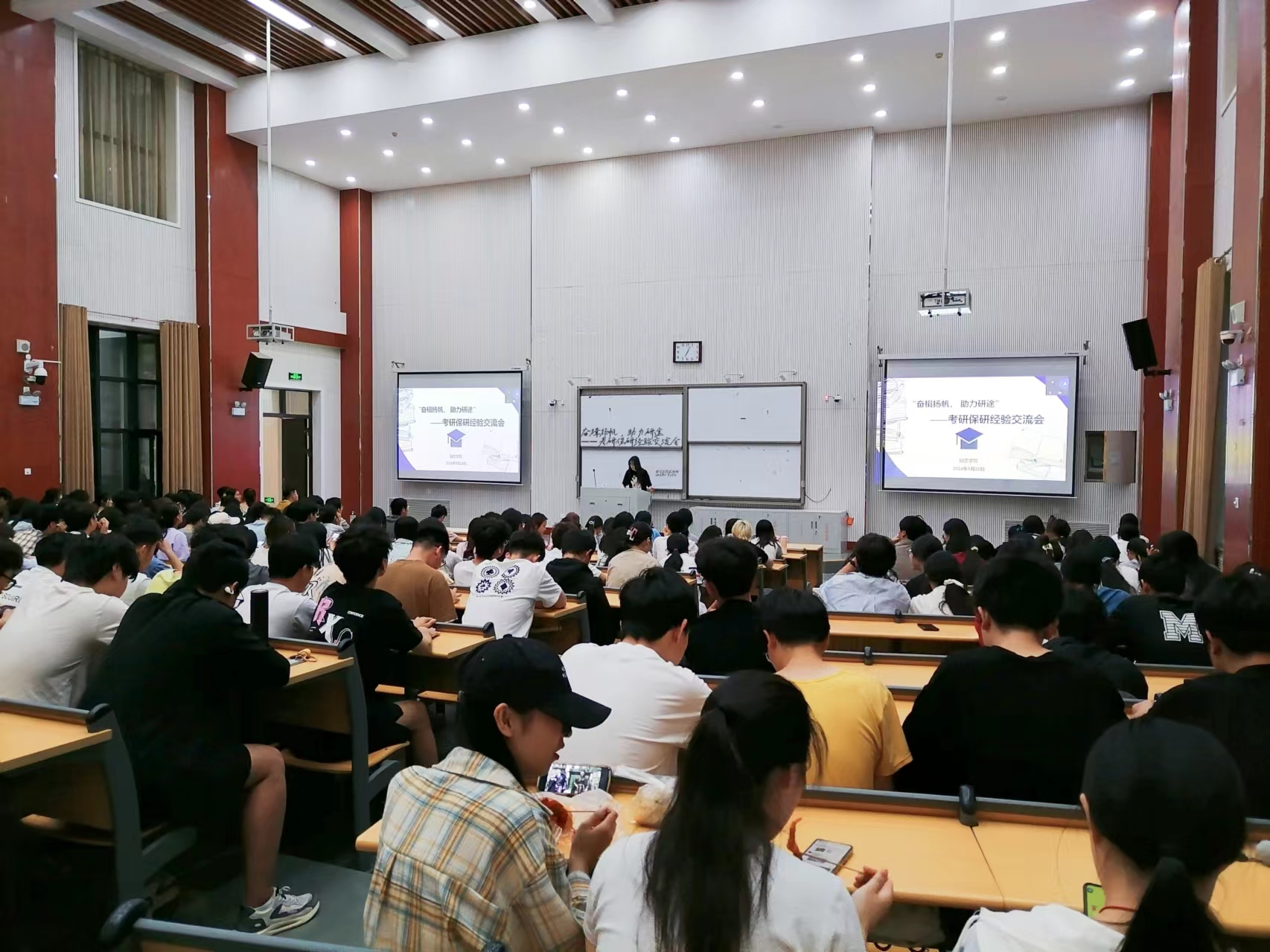 于龙子湖校区繁塔楼大教室5举行“奋楫扬帆,助力研途”考研保研经验交流会,活动于线上线下同时开展,2022级到场,2021级、2023级线上参会。我院2020级优秀学生代表安晓燕、马慧丽、胡赫、李英科、王若楠、季承奎应邀到场为大家分享学习经验,活动由2022级刘力瑕主持。