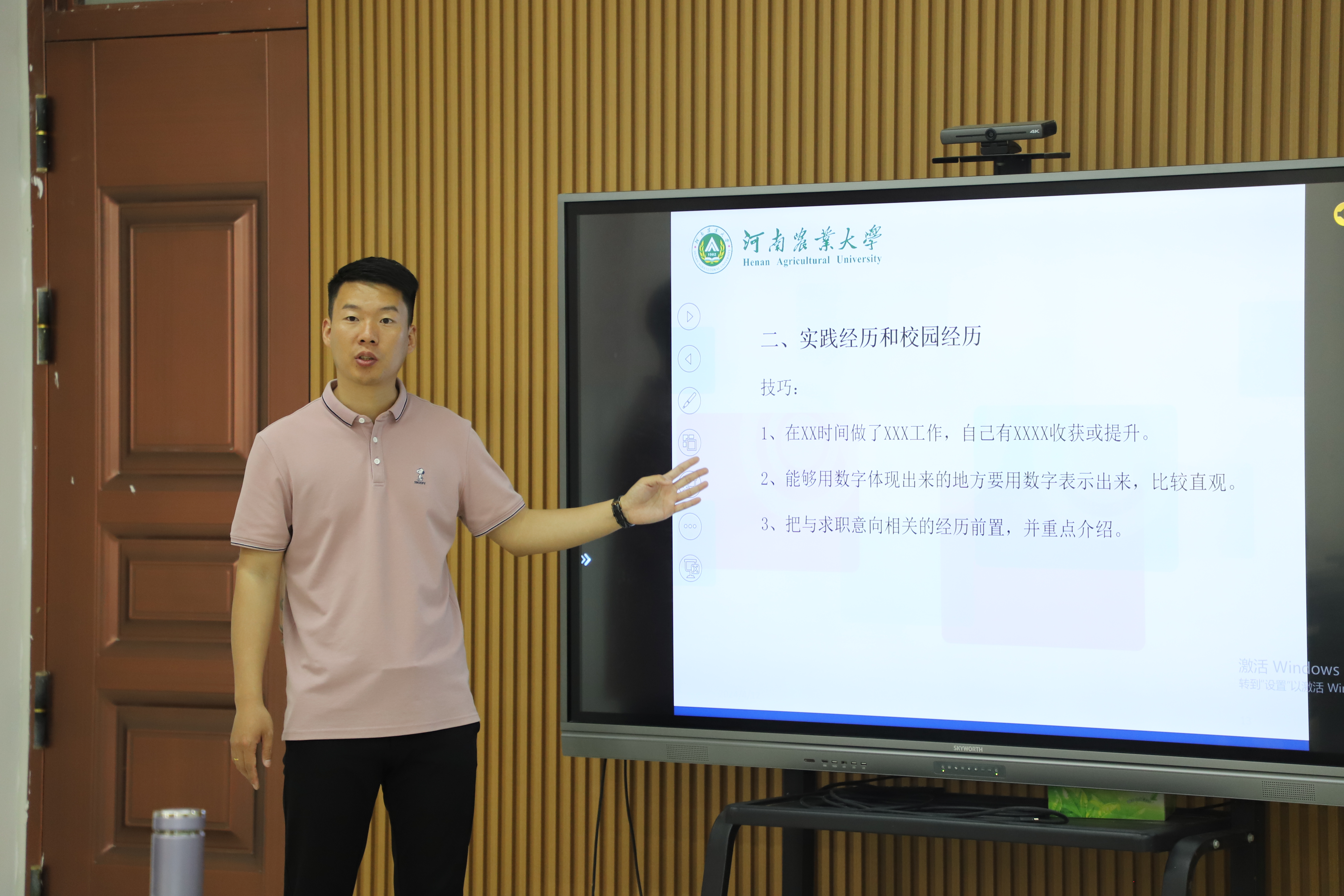 为全面提升我院2024届毕业生的求职竞争力,顺利实现就业目标,我院于4月12日中午,在力行楼北211会议室举办简历制作及面试指导交流会,20级辅导员丁坤作为主讲老师出席活动,2024届求职学生参加。
