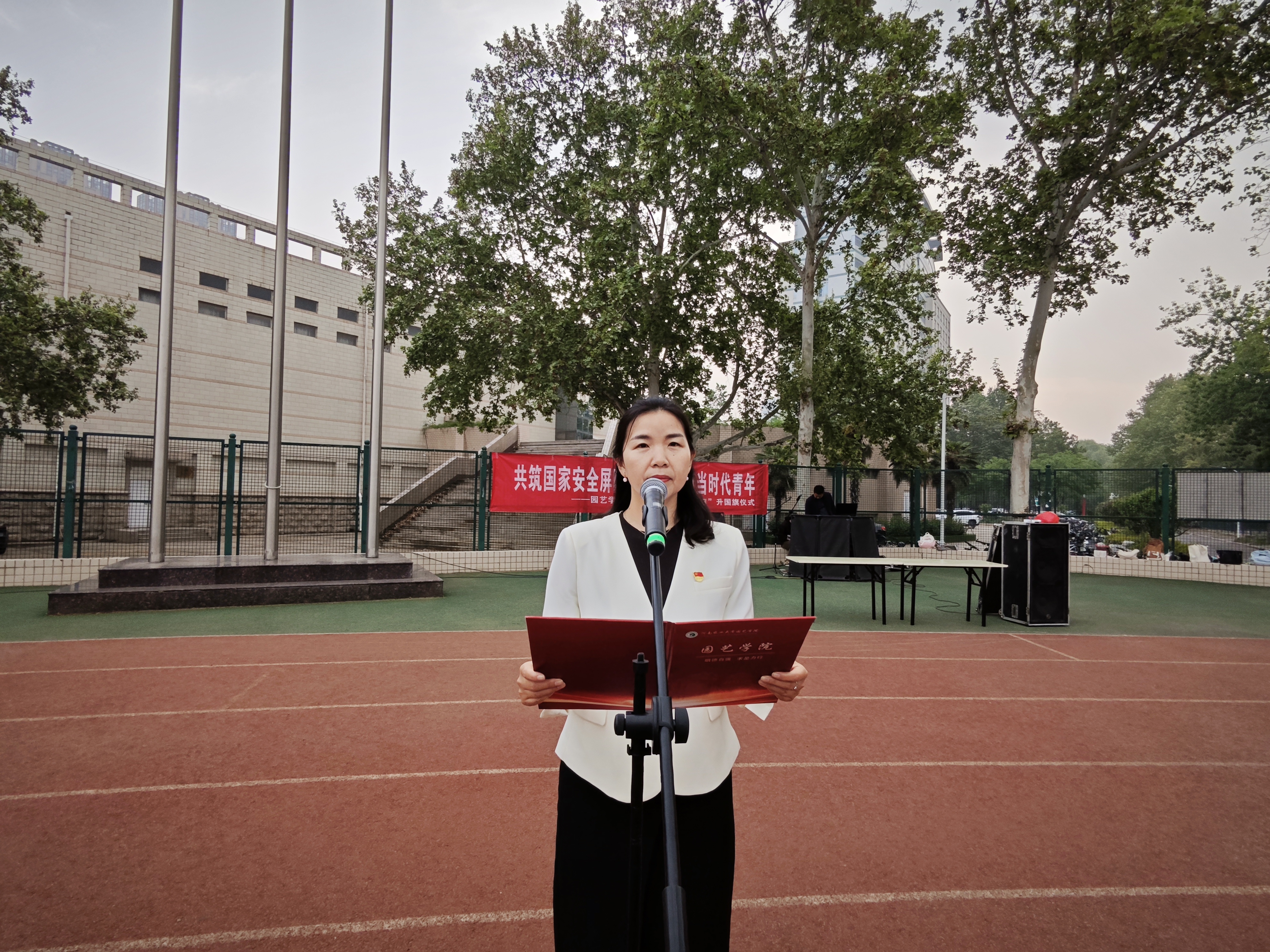 于4月15日第九个“全民国家安全教育日”当天,在文化路校区举行了《共筑安全屏障 守护国家安全》主题升旗仪式。升旗仪式由院党委副书记毛会坡主持,学院领导班子、辅导员、教师代表和2023级全体本科生共同参加。