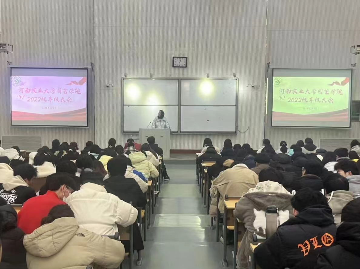 于龙子湖校区5CD1大教室召开2022级本科生年级大会。本次大会由2022级辅导员乔芳芳主持,2022级全体同学参加。