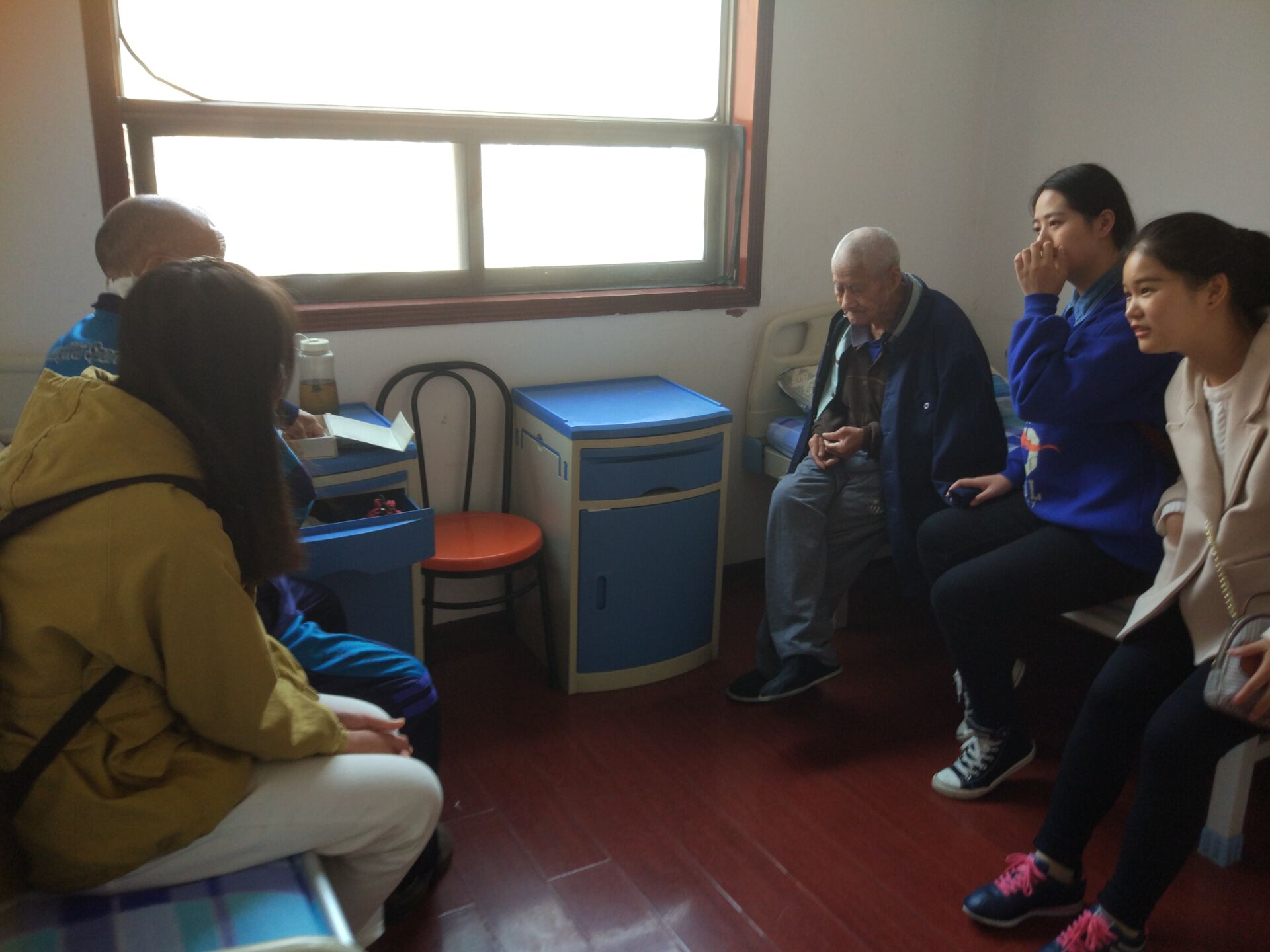 一到敬老院,各小组纷纷和老人们交流座谈,欢声笑语洋溢在敬老院各个房间。支部成员们听老人们讲述“过去的故事”,了解了他们年轻时艰苦奋斗的生活经历。改革开放四十年来,他们见证了祖国的各行各业发生了翻天覆地的变化。老年人老有所养、老有所乐、老有所为,大家对新时代新生活充满了无限憧憬和希望,对今天的幸福生活感慨万分。在与老人们的相处之中,同学们表示要更加珍惜现在来之不易的美好生活,也感受到了老人们对来自国家和社会各界给予老年人关心和帮助的感谢。此次主题党日活动过程中,支部成员还纷纷为老人们献上了准备好的爱心袜子,在冬季到来之前,送上我们的关怀,温暖他们整个寒