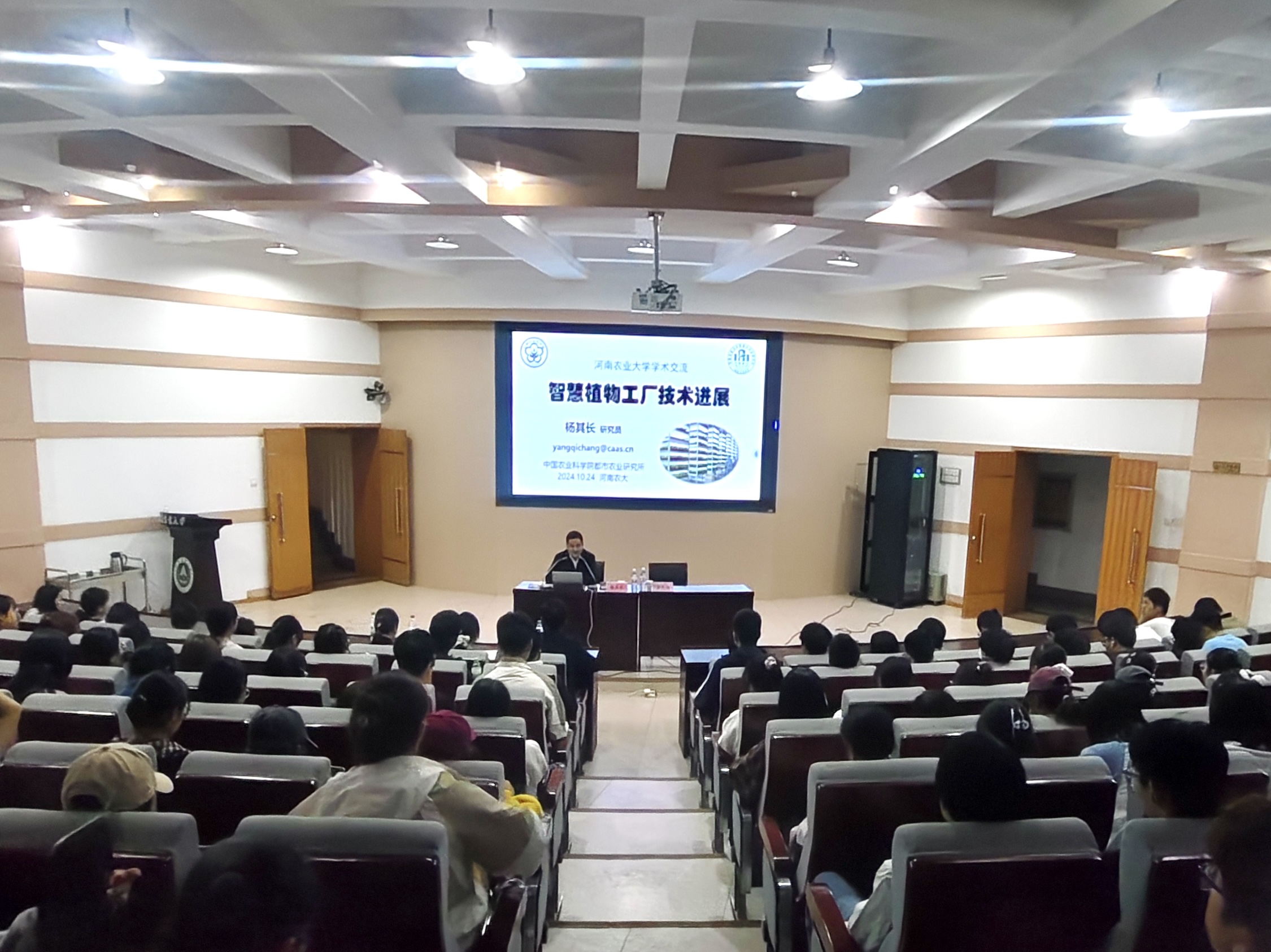 为了帮助同学们更好了解设施园艺及其发展前景, 10月24日晚,国际欧亚科学院院士、中国农业科学院都市农业研究所智能装备创新团队首席科学家杨其长受邀来我院作题为“智慧植物工厂技术进展”的学术报告,报告会由院长郑先波主持,副院长谭彬、2024级辅导员及全体新生参加报告会。