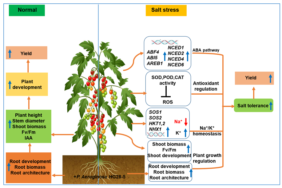 Pseudomonas aeruginosa)HG28-5,揭示了HG28-5菌株通过刺激植株ABA生物合成和信号传导及维持体内Na