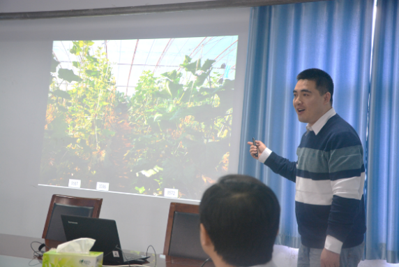 会议室为我院师生作了题为“黄瓜抗枯萎病基因的鉴定及功能分析”的学术报告,报告会由蔬菜系主任胡建斌教授主持,学院部分教授老师以及研究生参加。