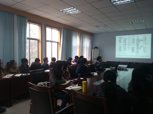 师生做学术报告,杨博士今年8月份从美国威斯康星大学麦迪逊分校园艺系学成回国,受聘我院蔬菜学特聘教授岗位。他报告的题目是“黄瓜小叶基因的图位克隆、分子进化与功能”。 台湾av女优