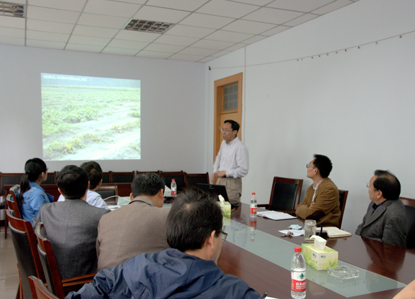 Weng教授以黄瓜霜霉病抗性及心皮数两个性状的QTL定位为例,从QTL定位的实验设计需要考虑的因素、群体构建及群体大小、性状调查及方法、数据处理与分析、到最终的QTL定位及候选基因的验证进行讲述,使老师和同学们了解了目前国际上QTL定位的最新技术及最新发展动态。报告结束后,老师和同学就报告内容各抒已见,与Weng教授展开了热烈的讨论。