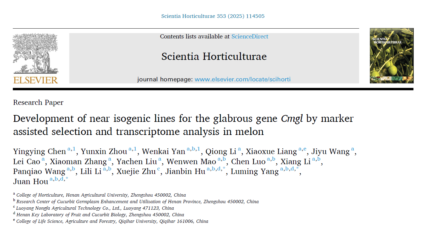 瓜类作物基因组与生物技术育种科技创新团队在国际知名期刊Scientia Horticulturae上发表了题为“Development of near isogenic lines for the glabrous gene