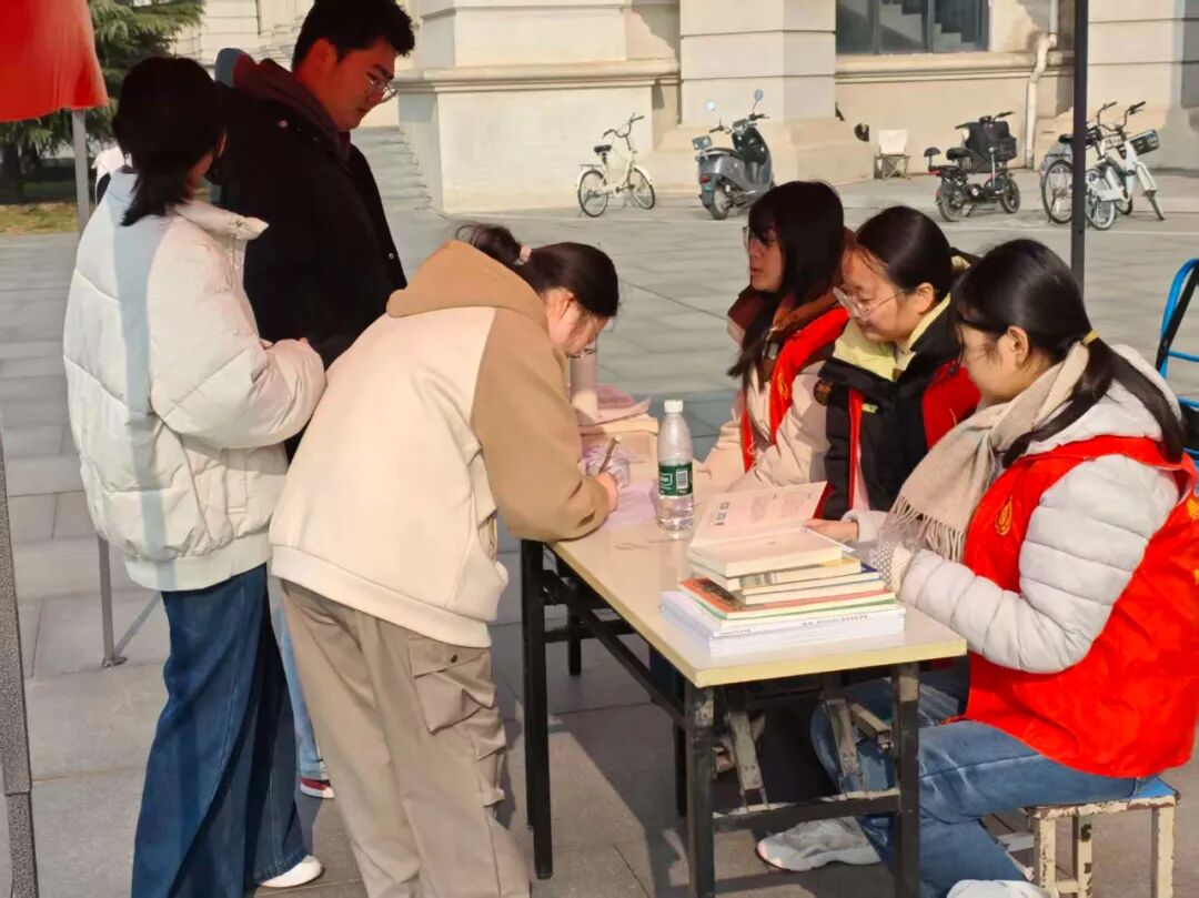 活动当日,志愿者团队提前在两校区指定区域完成捐赠点布置工作,精心摆放宣传展板、整齐陈列图书收纳箱,以饱满的热情引导过往同学参与活动。本次捐赠范围涵盖正版图书、合规音像资料及学术历史类手稿等,丰富的捐赠品类与鲜明的公益主题吸引了大批同学驻足咨询,大家踊跃参与捐赠,现场氛围热烈而有序。志愿者们全程耐心细致地讲解捐赠流程,对每一份捐赠物资都进行规范登记、分类整理,用严谨的态度保障活动顺利推进。