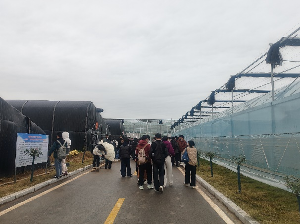 下午,师生们来到河南农大扶沟蔬菜研究院。研究院内,智能化连栋大棚、日光温室和外保温塑料大棚错落有致,各种蔬菜瓜果长势喜人。在玻璃连栋温室内,学生们亲眼目睹了不同模式的无土栽培,以及多种多样的栽培品种,深刻体会到了现代农业技术的先进性与实用性。研究院的工作人员还详细讲解了农业园区的布局与运营管理方式,让学生们对农业园区的规划与管理有了更加直观和深入的理解。