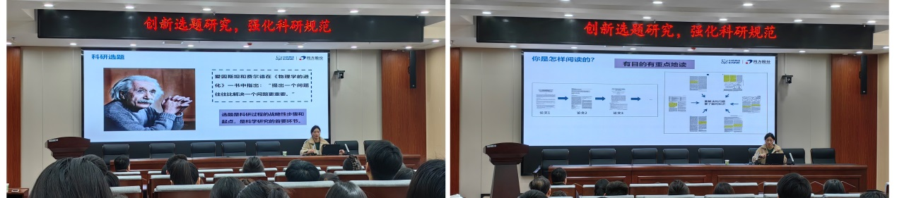 2024年3月14日,我院联合校图书馆在龙子湖校区力行楼(第二实验楼)北209会议室举办主题为“创新选题研究,强化科研规范”的专题讲座,我院青年教师和全体研究生听取了此次讲座。本次讲座邀请了中国知网讲师李燕萍老师,讲座针对:一、科研选题基本原则、科学检索把握创新和知网鸟瞰选题方向;二、文献阅读方法;三、学术论文写作与投稿规范;四、学术不端和查重方法及流程进行系统、全面的讲解。期间老师与同学们积极互动,解答关于期刊论文撰写、投稿等详细问题,并给予了全面指导。