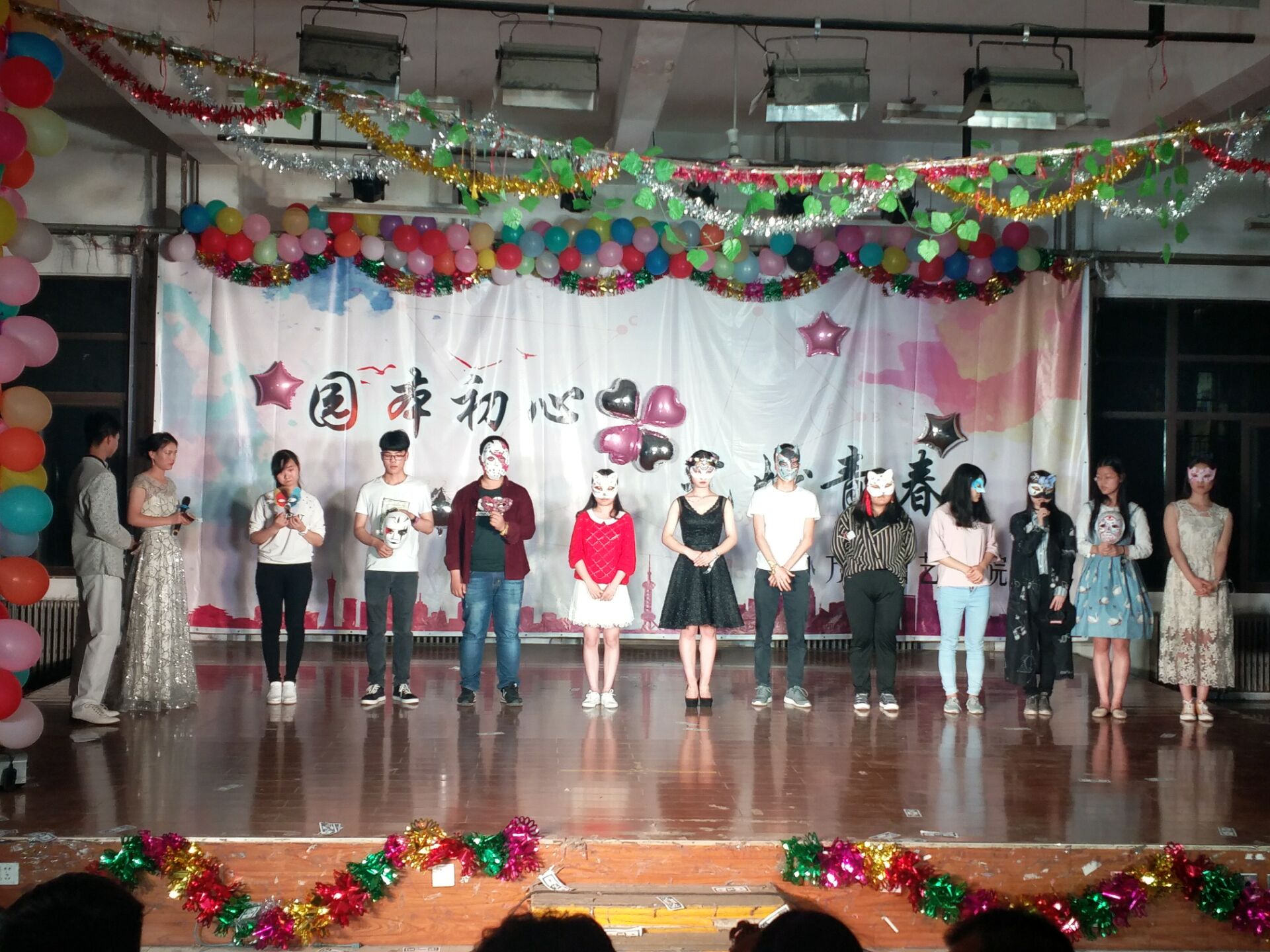 六点三十分,一餐厅三楼氛围已浓,农大电乐团的开场歌曲夹杂着同学们的欢腾声为此次活动拉开了帷幕,在时明时暗的灯光下,带着面具有着各种装扮的同学们,开始了交流和互动。紧接着台湾av女优