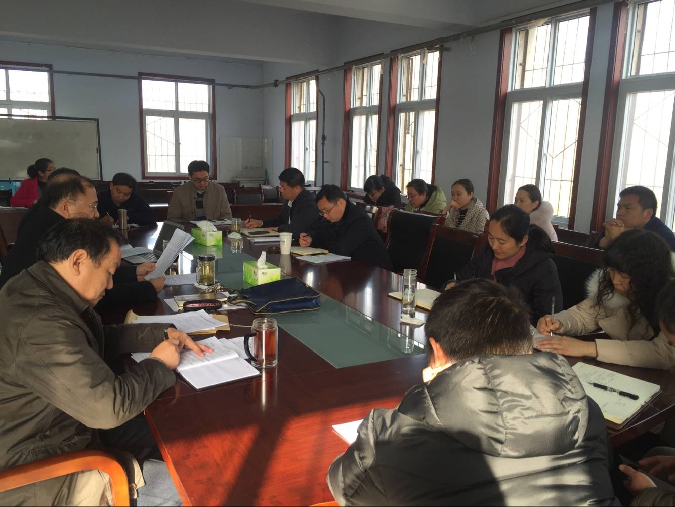 在二号楼学院会议室召开班子扩大会议,学习传达我校深入学习贯彻党的十九大精神2018年专题研讨班精神。学院全体党委委员、班子成员和各支部书记、委员,各系主任、副主任,平台主任参加学习。会议由院长冯建灿通知主持。