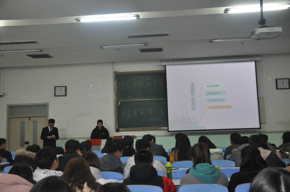下午两点半竞选大会准时开始,学生会主席陈旭伟担任主持人,副主席刘庆帅对第九届学生会工作进行汇报总结。接下来,首先是17级学生会干事进行汇报展示,发表演讲竞选学生会副部长;随后16级学生会副部长发表演讲竞选部长、主席团,并接受评选团的现场提问。通过他们的精彩展示,可以看出他们对台湾av女优