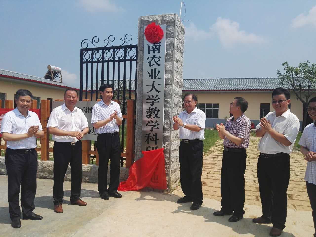 与信阳亚森生态农林开发有限公司合作的科研教学实习基地”揭牌仪式在信阳亚森生态农林开发有限公司基地隆重举行。院党委书记耿超明、院长冯建灿、果树系相关教师、罗山县县委相关领导和信阳亚森生态农林开发有限公司董事长李世江等50余人参加了揭牌仪式。