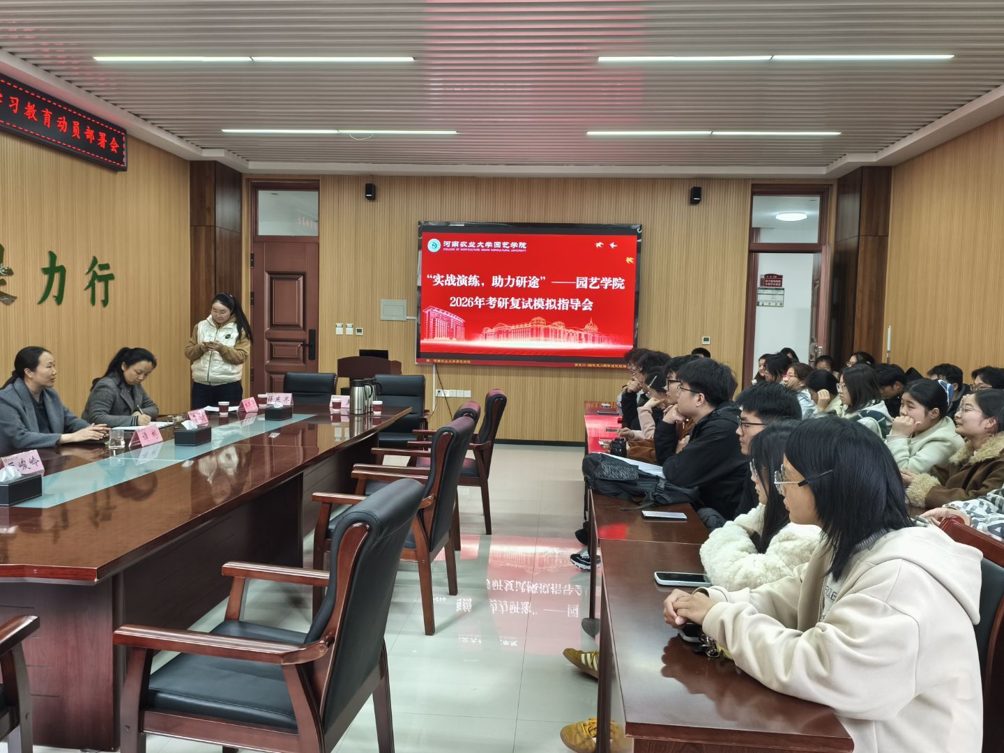 精心组织开展“实战演练,助力研途”为主题的考研复试模拟指导会。副院长谭彬出席会议,茶学系主任贺巍、观赏园艺系副主任薛东齐、果树系李志谦和蔬菜系豆峻岭、孟更担任复试评委,2022级辅导员乔芳芳主持会议,2026届考研学子广泛参与。