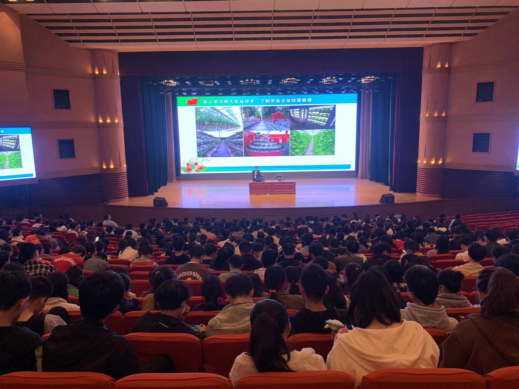 王智豪总经理先向同学们表示了欣慰之情,又从公司简介,大学时光,实习生活,创业历程,草莓产业,成长感悟这六个方面为大家做主题报告。在报告过程中,他也通过自己的实际经历为同学们指明了前进的道路,同时也寄语同学们要静下心来做好自己的事情,要心怀感恩,回报社会,也要明德自强,向上向善。最后,毛书记对此次创业分享报告会进行了总结并与同学们进行了简单的互动,毛书记也殷切期望同学们能够学习王智豪不怕吃苦的精神,成为有理想、敢担当、能吃苦、肯奋斗的有为青年。