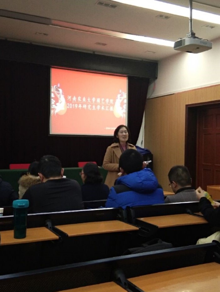 本次学术交流首先从参选优秀研究生的同学开始汇报,参选的10名研究生从课题的选题背景、技术路线、实验进展等方面,详细阐述了自己研究生期间的科研成果,并从参加活动,获奖情况等方面介绍了本人的基本情况。随后,其他同学依次汇报自己的学术研究内容及进展情况,并对自己研究生阶段的感悟进行总结。汇报结束后,学院果树系教师白团辉进行总结,白老师对本次交流活动给予充分肯定,对同学们的研究水平及能力给予表扬,同时提出三点建议,一是在科研中投入更多时间,认真严谨试验,不怕挫折,及时总结经验;二是要大量阅读文献,拓宽知识面,增强创新思维,积极探索;三是要积极与导师沟通,随时接受导师指导,保证路线明确,试验顺畅。最后院党委副书记侯亚兵老师对优秀研究生评比情况进行总结,现场公布评选结果。