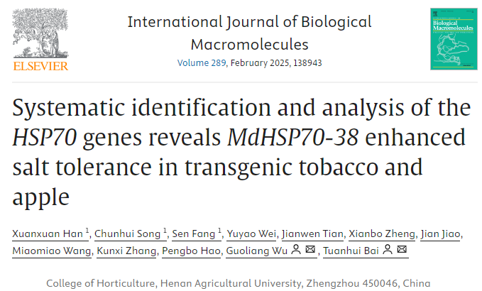 MdHSP70-38正向调控苹果的耐盐性,研究结果为苹果耐盐遗传改良奠定了理论基础、并提供了潜在的基因资源。