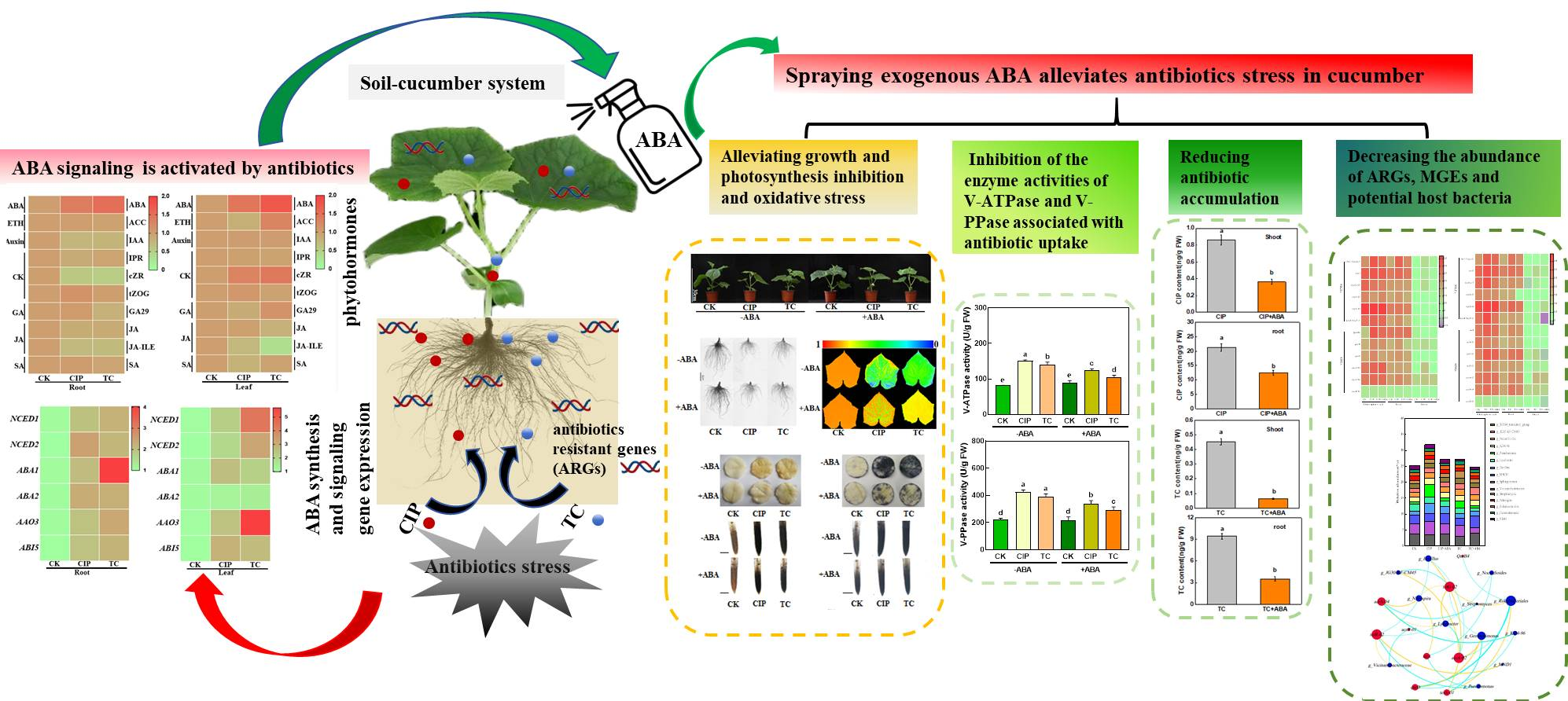 园艺设施结构与环境研究团队的研究成果“Abscisic acid confers antibiotic stress tolerance in cucumber by alleviating antibiotic phytotoxicity and decreasing the levels of antibiotic and antibiotic resistance genes”在国际环境科学与工程领域知名期刊Journal of Hazardous Materials (中科院1区Top,IF=11.3)在线发表。研究揭示了植物激素脱落酸消减黄瓜抗生素污染的新功能。研究结果为有效消减土壤-植物系统中抗生素累积及抗生素抗性基因传播提供了新思路。