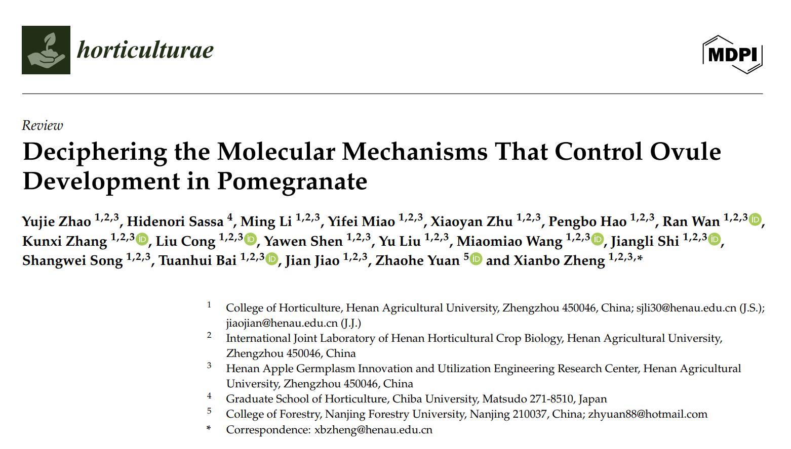 苹果逆境生物学与简约技术栽培体系团队在国际知名学术期刊Horticulturae(中科院二区,影响因子3.2)上发表了题为"Deciphering the Molecular Mechanisms That Control Ovule Development in Pomegranate"的综述文章。